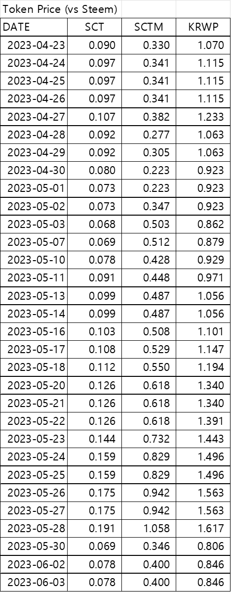 1 SCTM = 0.473 KRWP