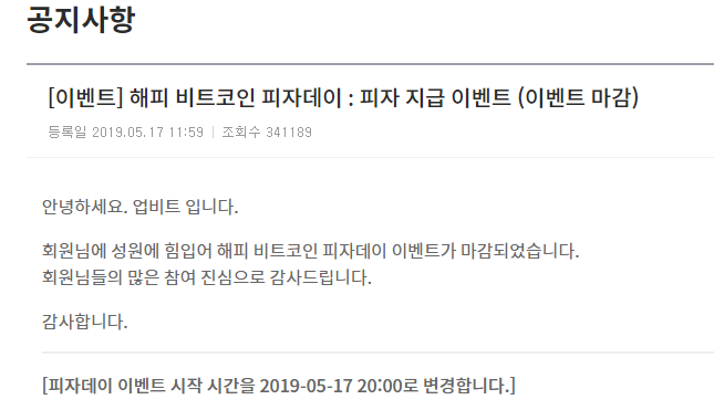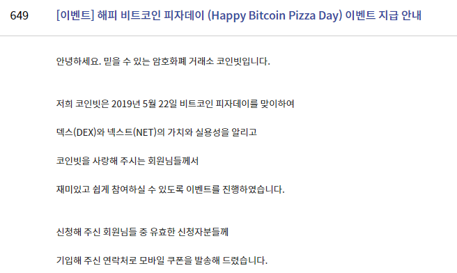 많은 거래소들이 이 비트코인 피자데이를 기념하기 위해 피자 쿠폰 지급 이벤트를 실시했는데요
