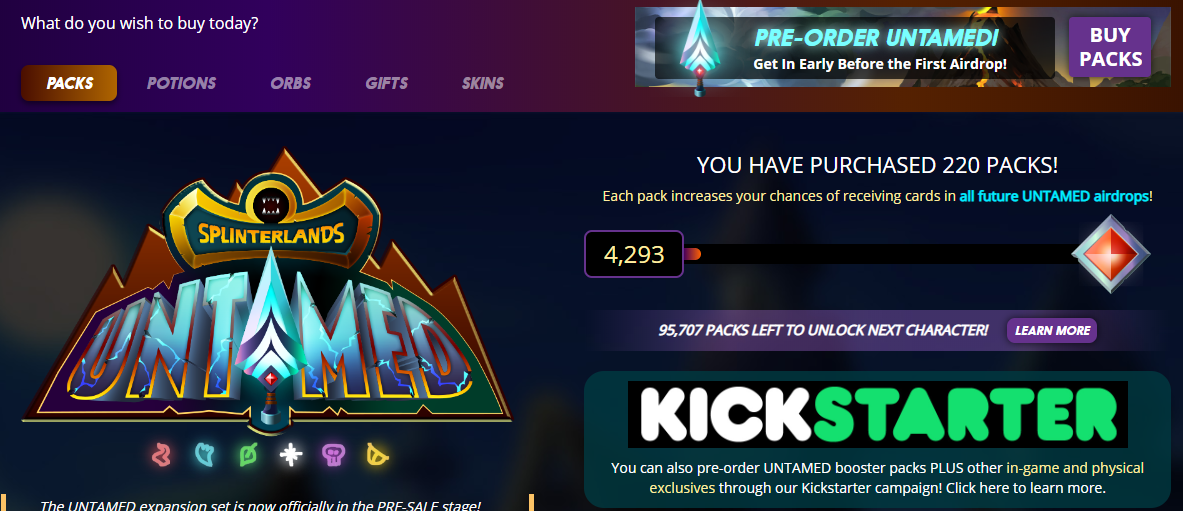 [스플린터랜드] 킥스타터와 언테임드 보상 이해하기