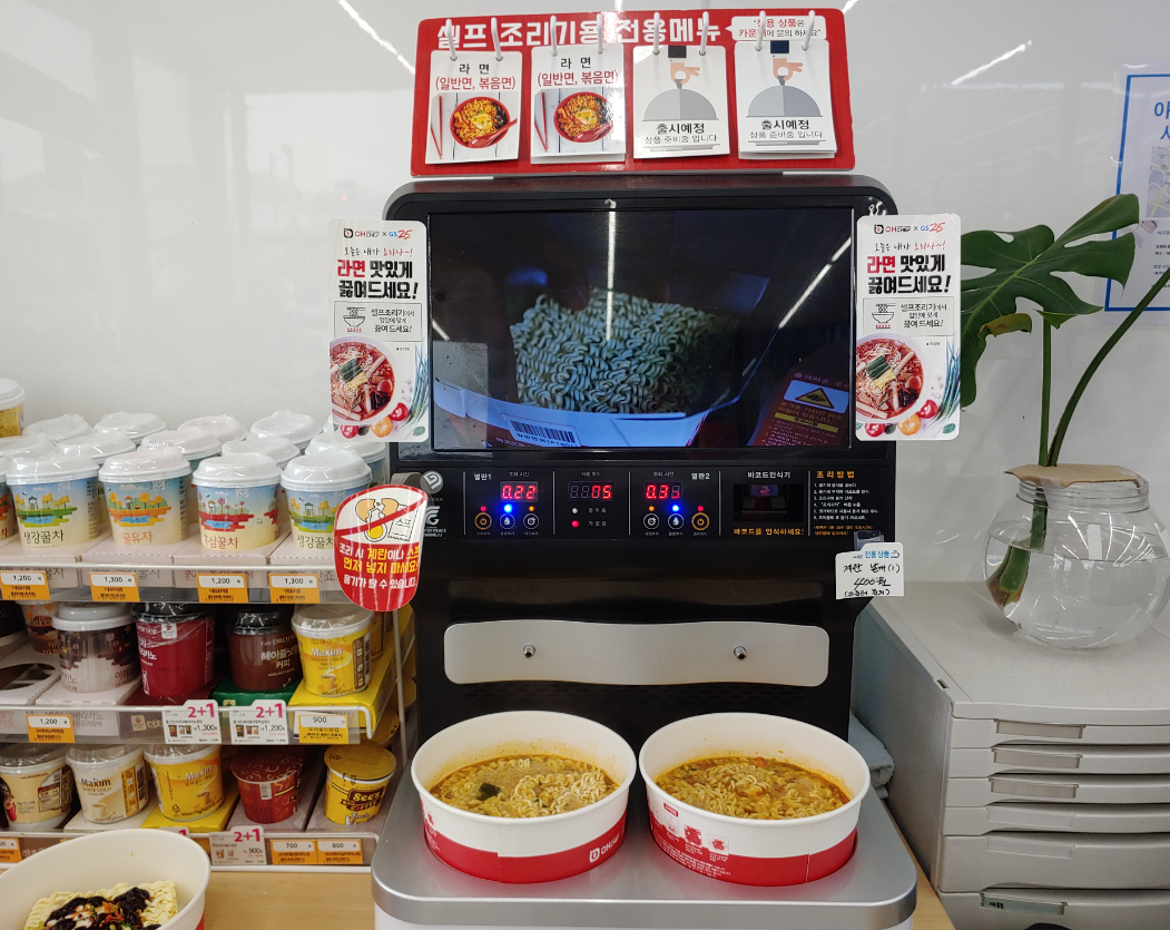 그런데 빨리 먹을수 있을지 알았는데.... 버튼 누르고 라면 끓이는데 4-5분 걸리더라구요.