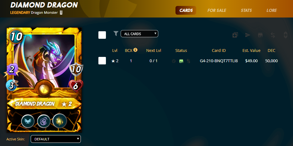 카드를 얻자마자 999$에 상점에 올리면서 제발 팔리길!!! 기도를 했는데 역시나 빌게이츠 공병 줍는 소리 였군요. 에어드랍 카드라 얻을 방법이 없어 기념으로라도 가지고 있을까 잠시 고민하였지만 가지고 있어도 쓰지도 못할 카드라 DEC로 바꿔버렸습니다.
