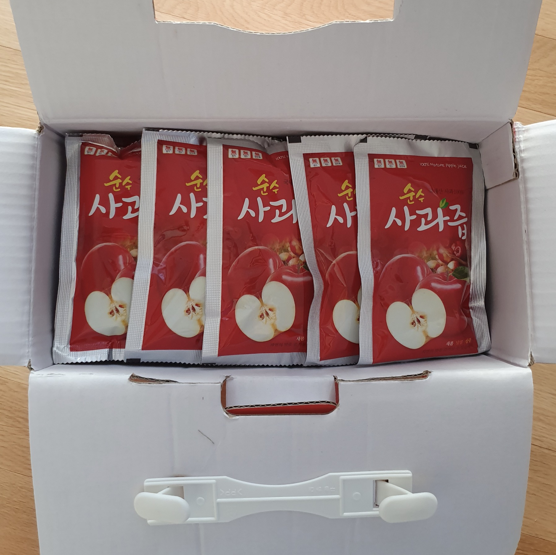 끝으로 몇 가지 건의사항이 있다면 브랜드를 하나 만드시면 어떨까 싶어요. 순수 사과즙은 너무 일반적이라 사람들이 기억할 수 있는 이름이 하나 붙으면 좋을 듯 합니다. 그리고 칼로리나 당 신경쓰시는 분들을 위해 기본적인 영양 표기가 있으면 좋겠습니다.
