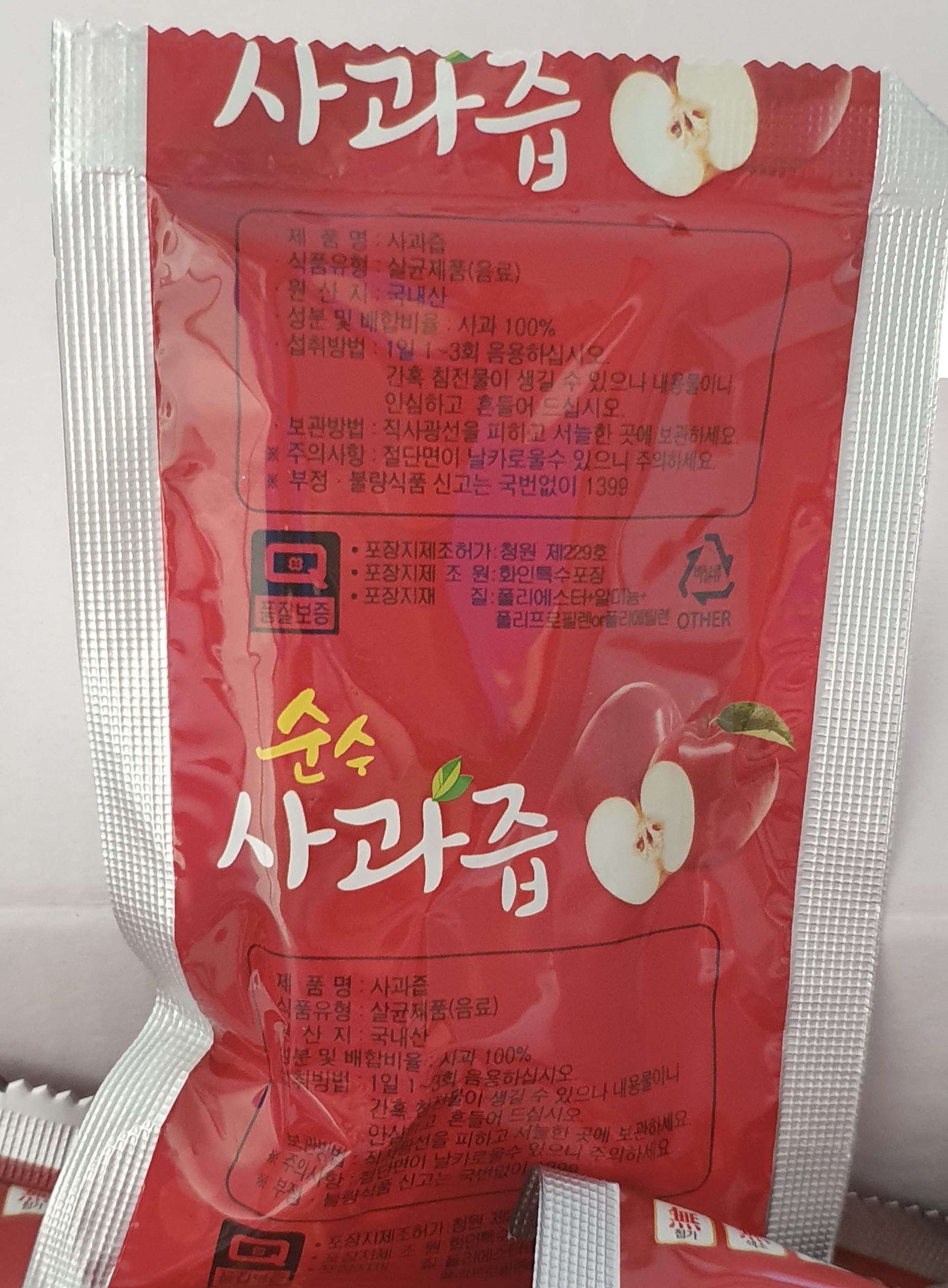 아이들도 좋아할 것 같고, 어른들도 아침 식사나 간식으로 드시면 안성맞춤일 것 같습니다. Juice 나 즙이나 다 짰다는 의미인데 사과 주스보다 사과즙이라고 하니 영양가와 농도가 훨씬 높은 느낌에 기분이 좋군요 ^^