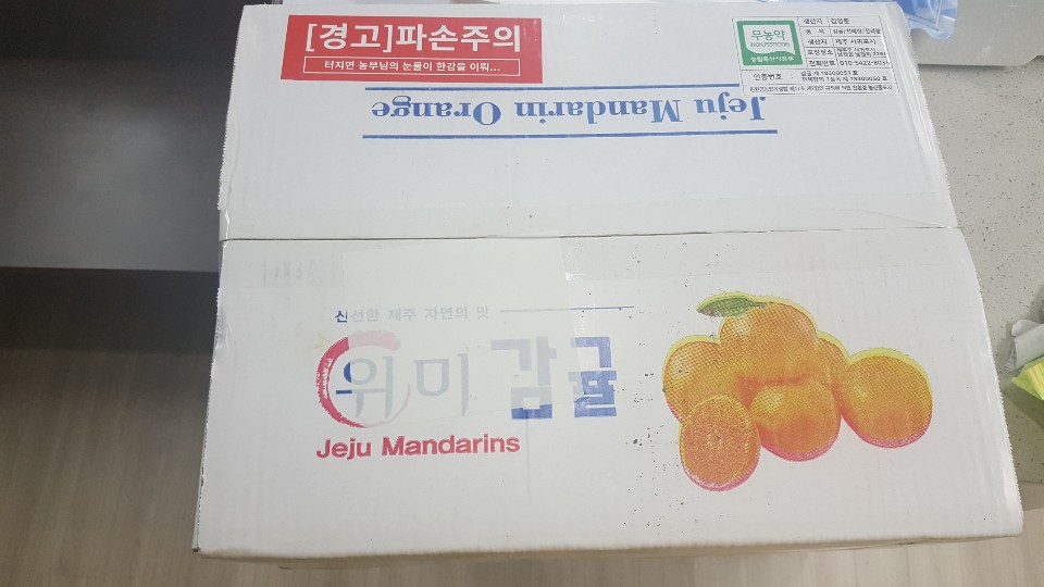 박스에서 Jeju Mandarins 벌써부터 침샘이 자극되기 시작했습니다.