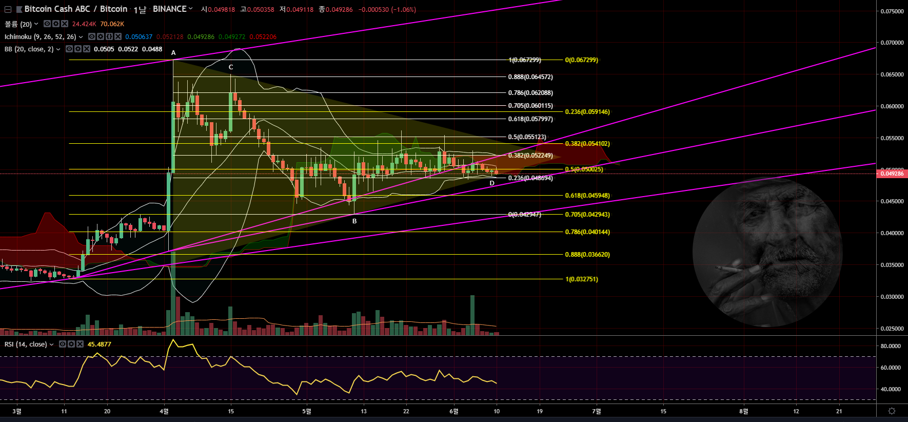 상승 관점에서는 여기서 지지받고 내일이나 모레 0.052249 비트를 넘어선다면 상승이 가능합니다.
