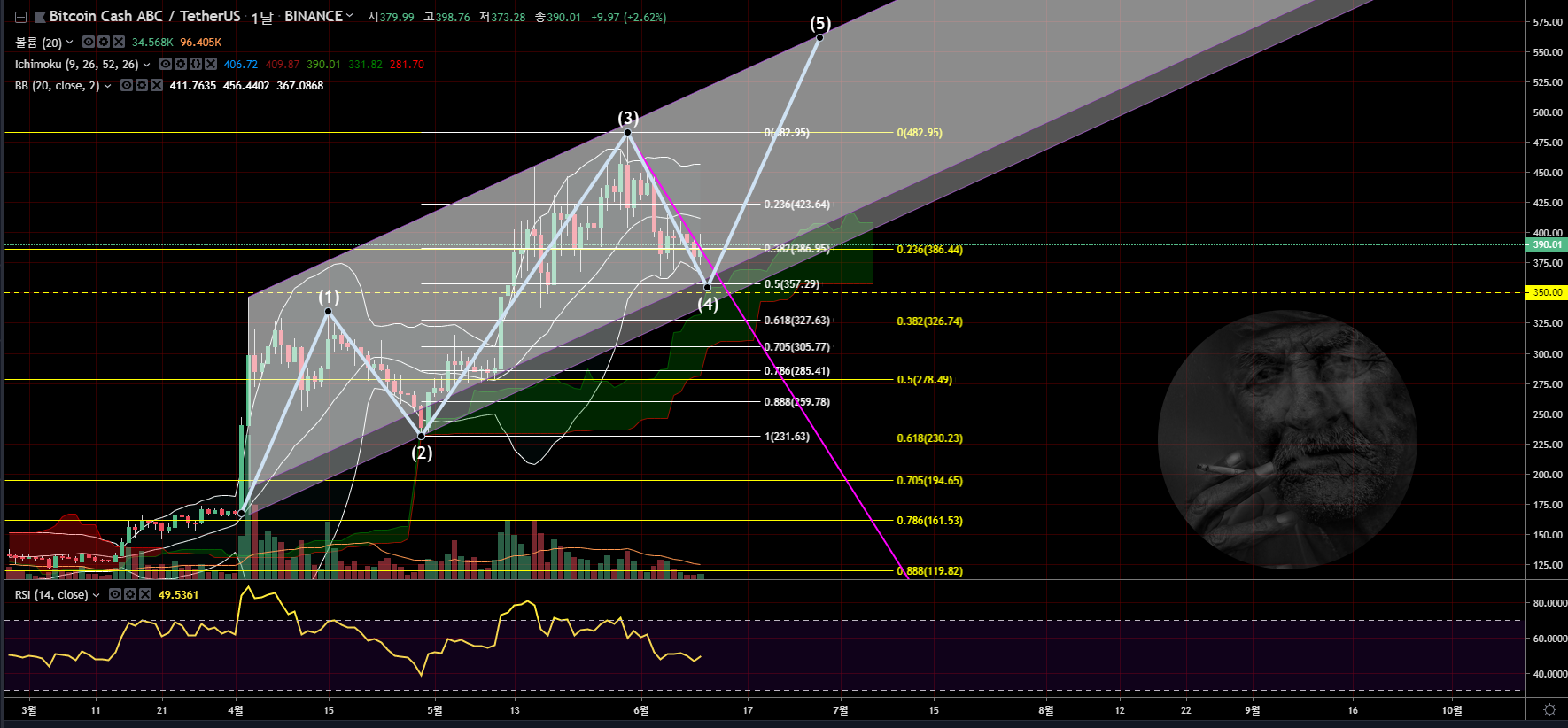 350 달러때를 깨지 않는다면 엘리엇 파동 관점에서 4파 완성 후 5파로 상승할 가능성이 있습니다.