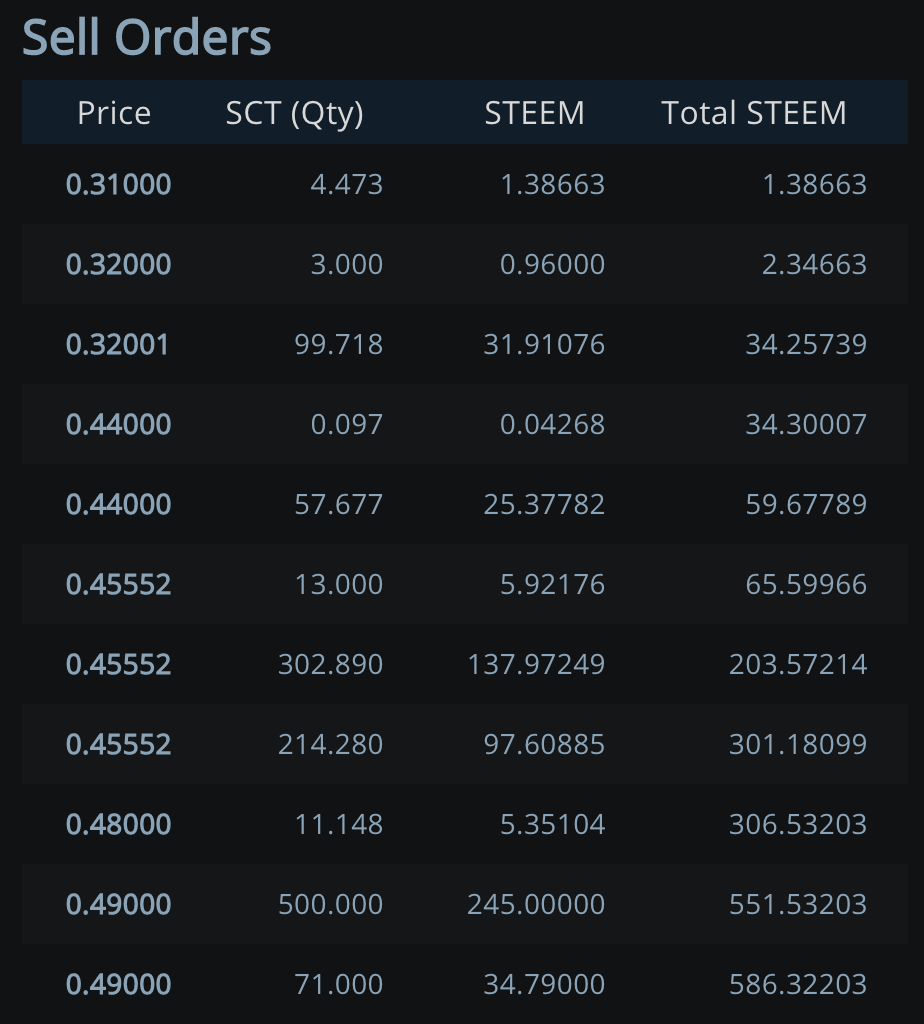 SCT 의 가격이 0.236 Steem까지 내려왔네요.