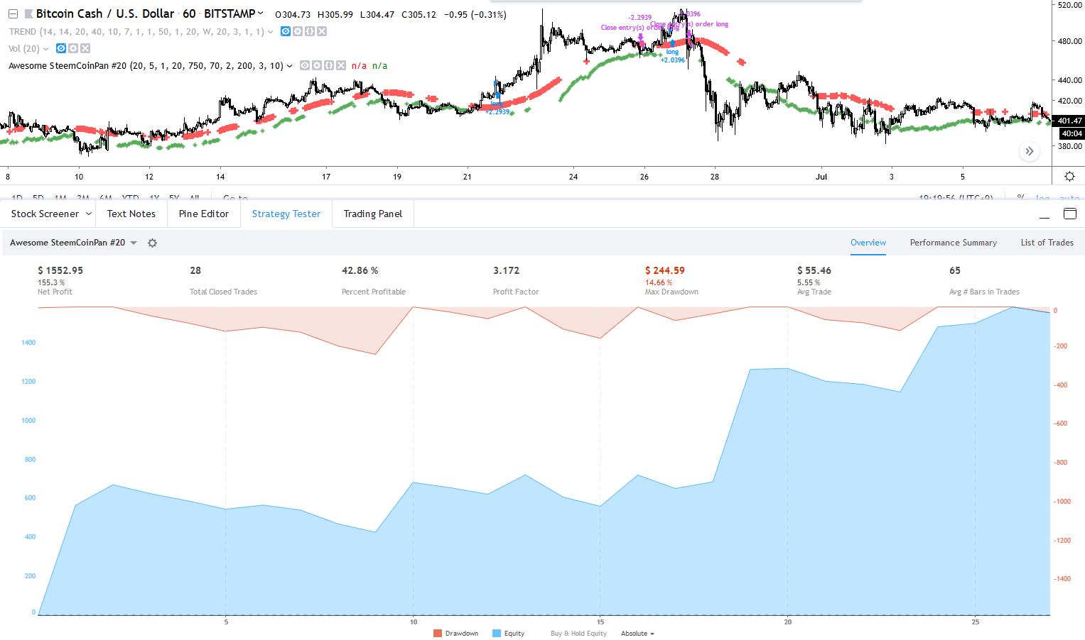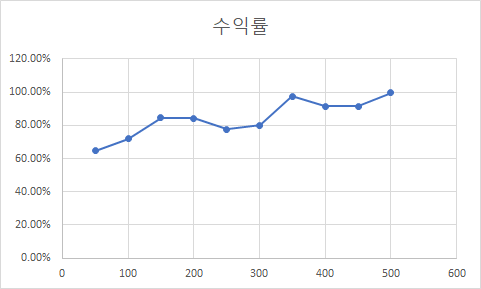 일단 가장 좋았던 점은, 다른 차트에 적용을 해도 의미있는 수익률이 나왔다는 점 입니다. 비캐를 살펴보시면 수익률과 손실률이 장난 아닙니다.