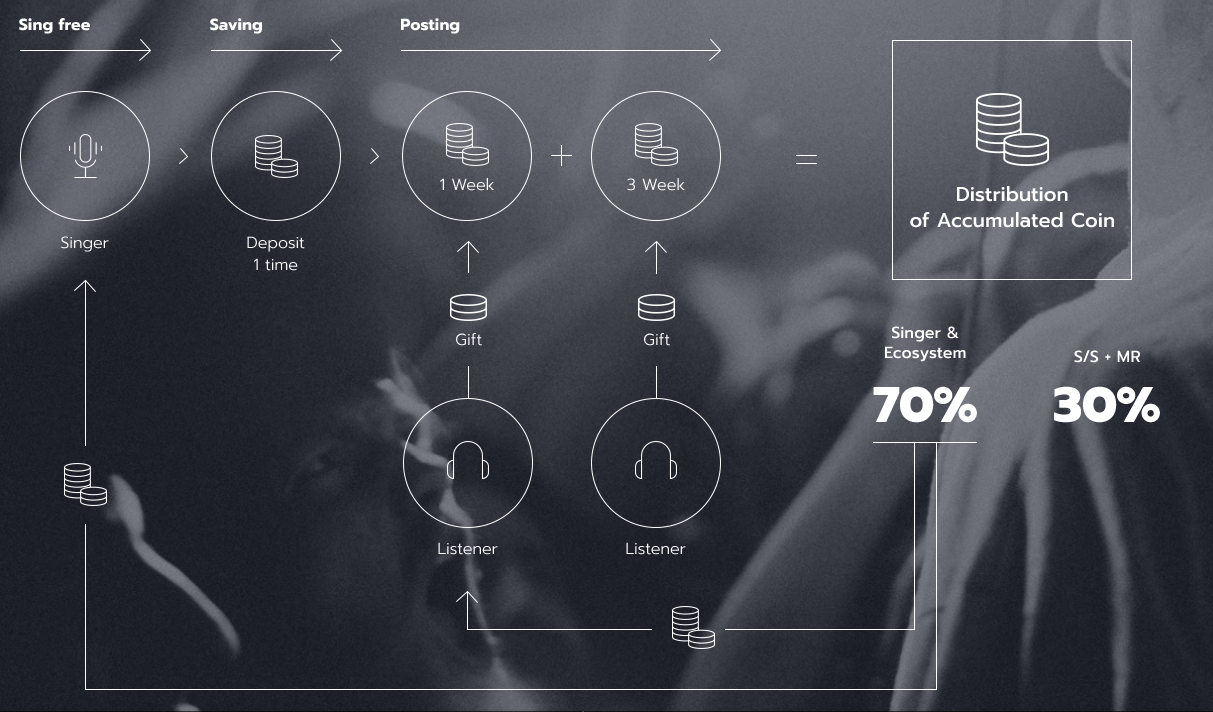 노래를 녹음해서 포스팅하고 이를 다른 유저들로부터 보팅으로 수익을 얻을 수 있다.