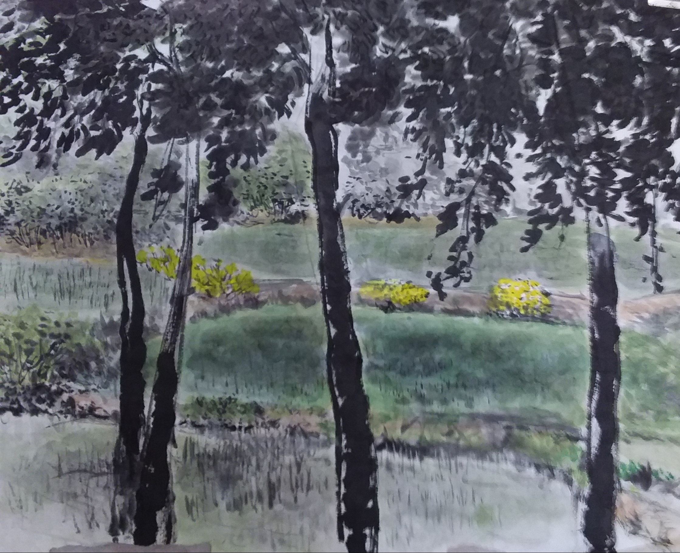 It is nice time for painting outside but due to corona people can't go out. For many we have to create our Art indoors. I like that contrast of colors. The trees are in shadow and further in background is sunlight.