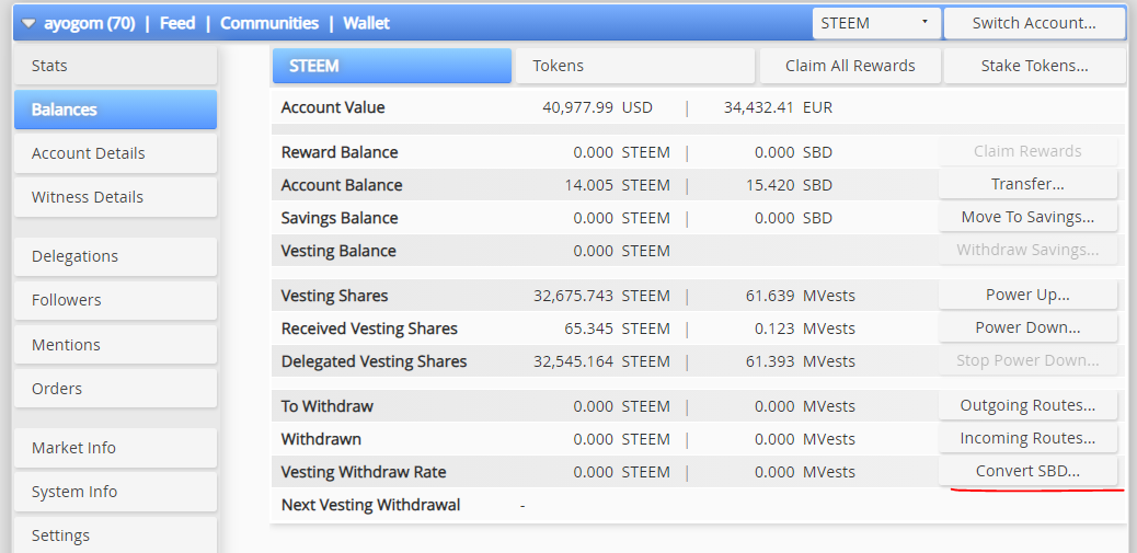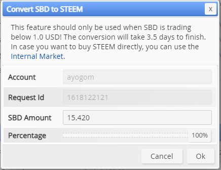 Balances -> STEEM -> Convert SBD 를 클릭하게 되면