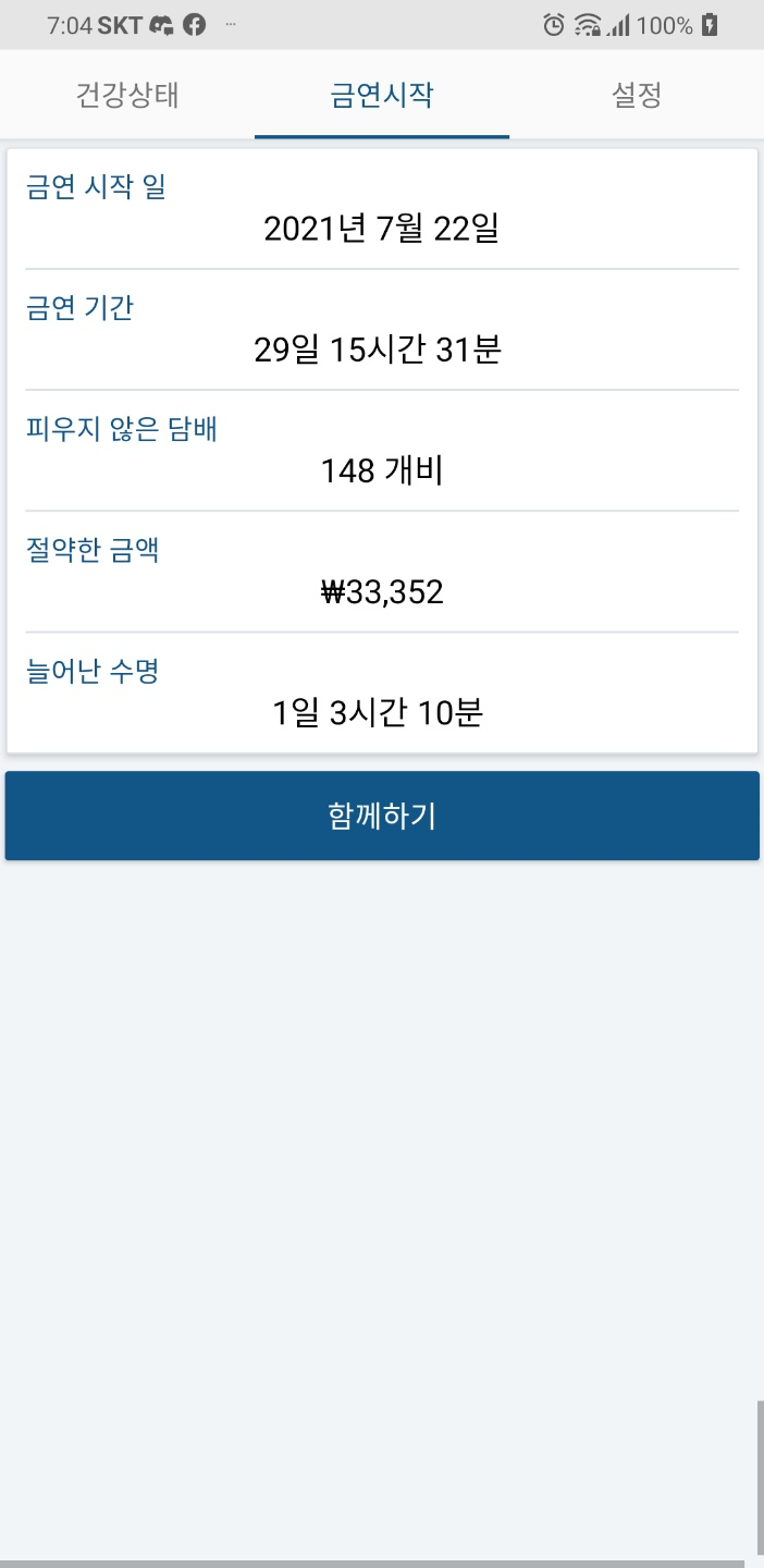 ㅎㅎㅎ 놀라운 사실을 알게 되었습니다. 담배를 30일을 안 피면 수명이 하루 늘어 나요 ㅋㅋㅋ 게임 어플 같은 느낌 ㅎㅎ 그래도 비타이니미 수명 늘어 나서 좋네요.^^