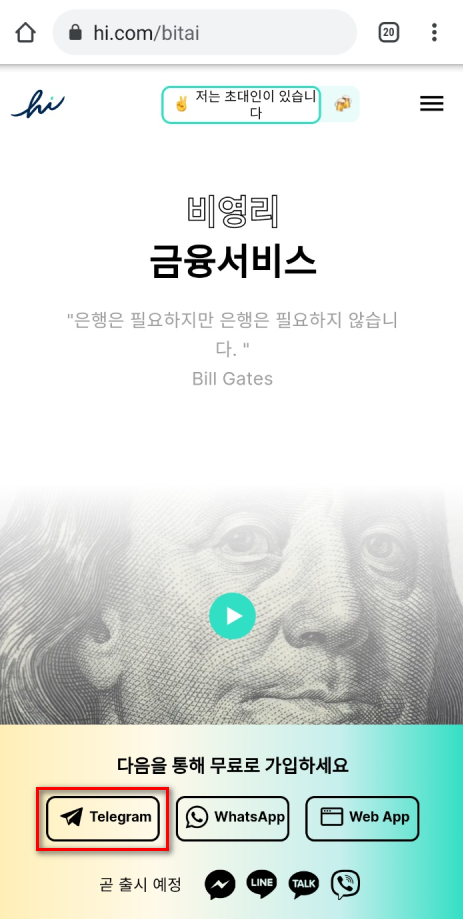 아래 가입 레퍼럴을 휴대폰에서 클릭 해 주세요.