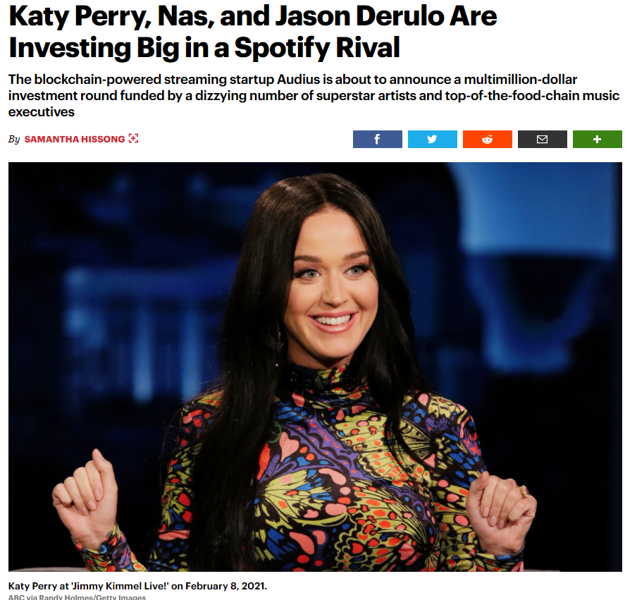 (케이티 페리 , 나스, 제이슨 제룰로 등 오디오 코인 에 투자 소식이 전해지며 엄청난 펌핑 을 만들어 냈다.)