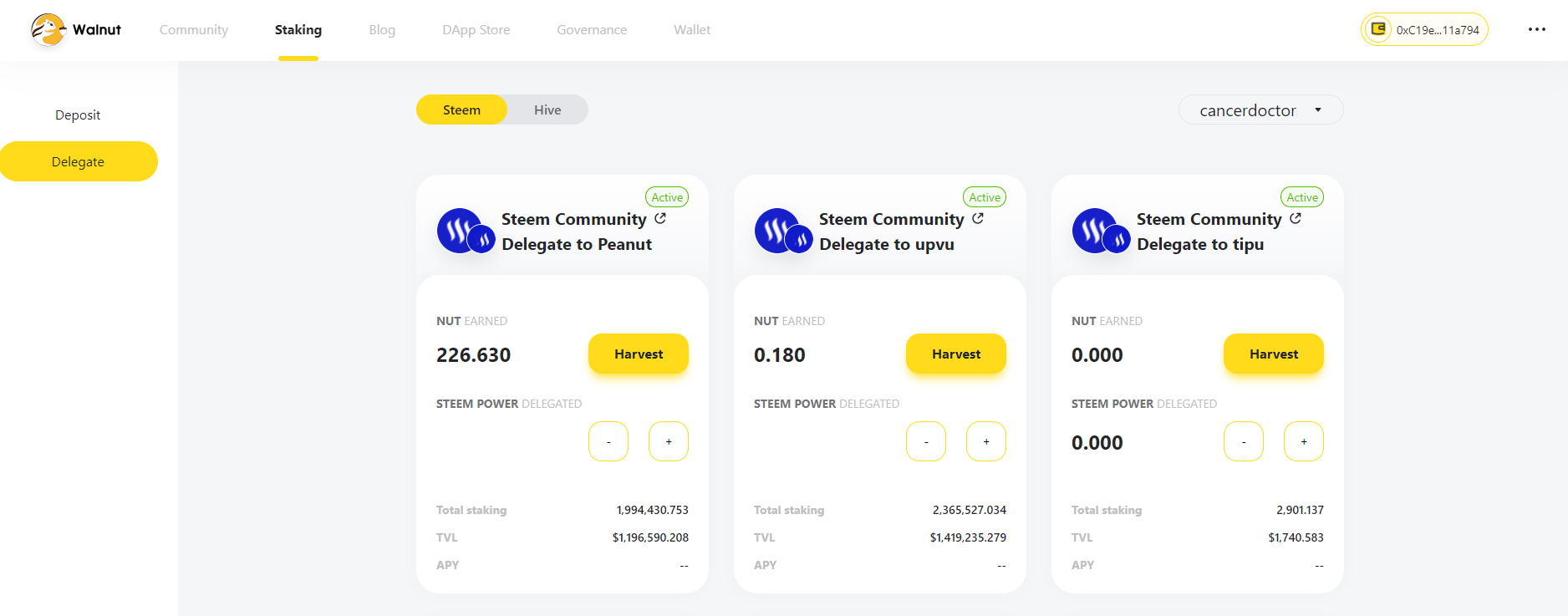 덕분에 PNUT와 UPVU에 임대하고 있던 것을 불러와서 Nut 채굴을 시작했습니다. 고맙습니다.