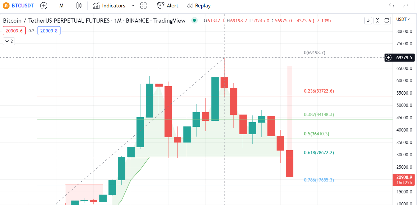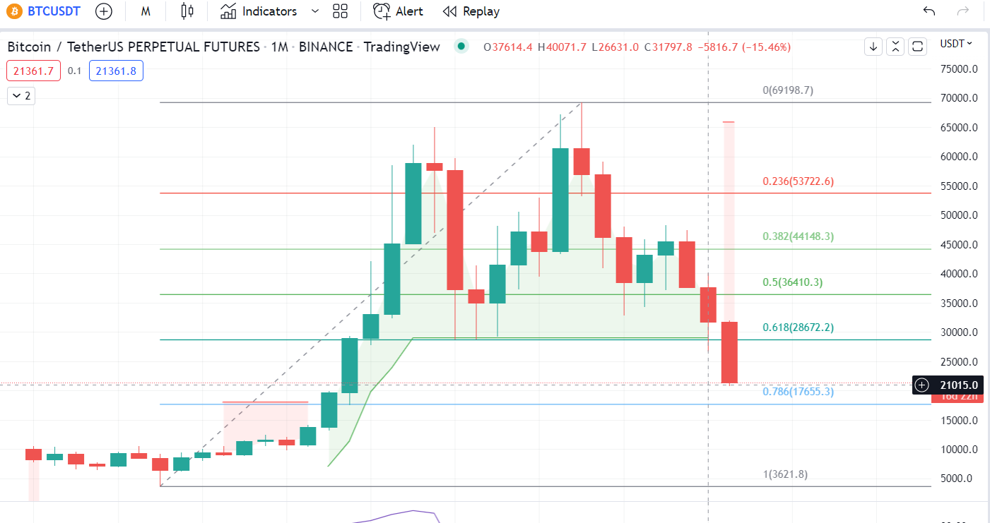 **#BTC는 이제 월간 차트에서 2020년 11월 수준인 $17655에 도달할 것입니다, 현재 $21015에 거래되고 있습니다. **