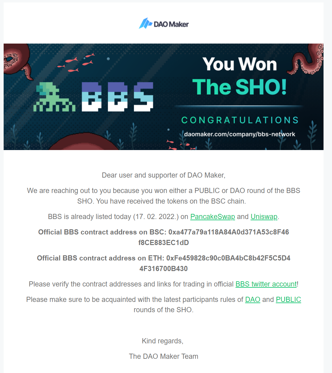 다오패드 당첨되었을때나 당첨토큰이 상장되었을때 이렇게 메시지가 옵니다.