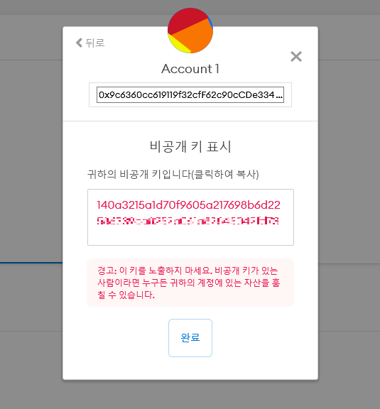위에서 시드 구문(비밀 백업 구문)과 비공개 키(개인 키)는 그 누구에게도 알려주어선 안되고, 분실해서도 안되기 때문에 정말 안전하게 잘 저장해 놓으셔야 합니다!