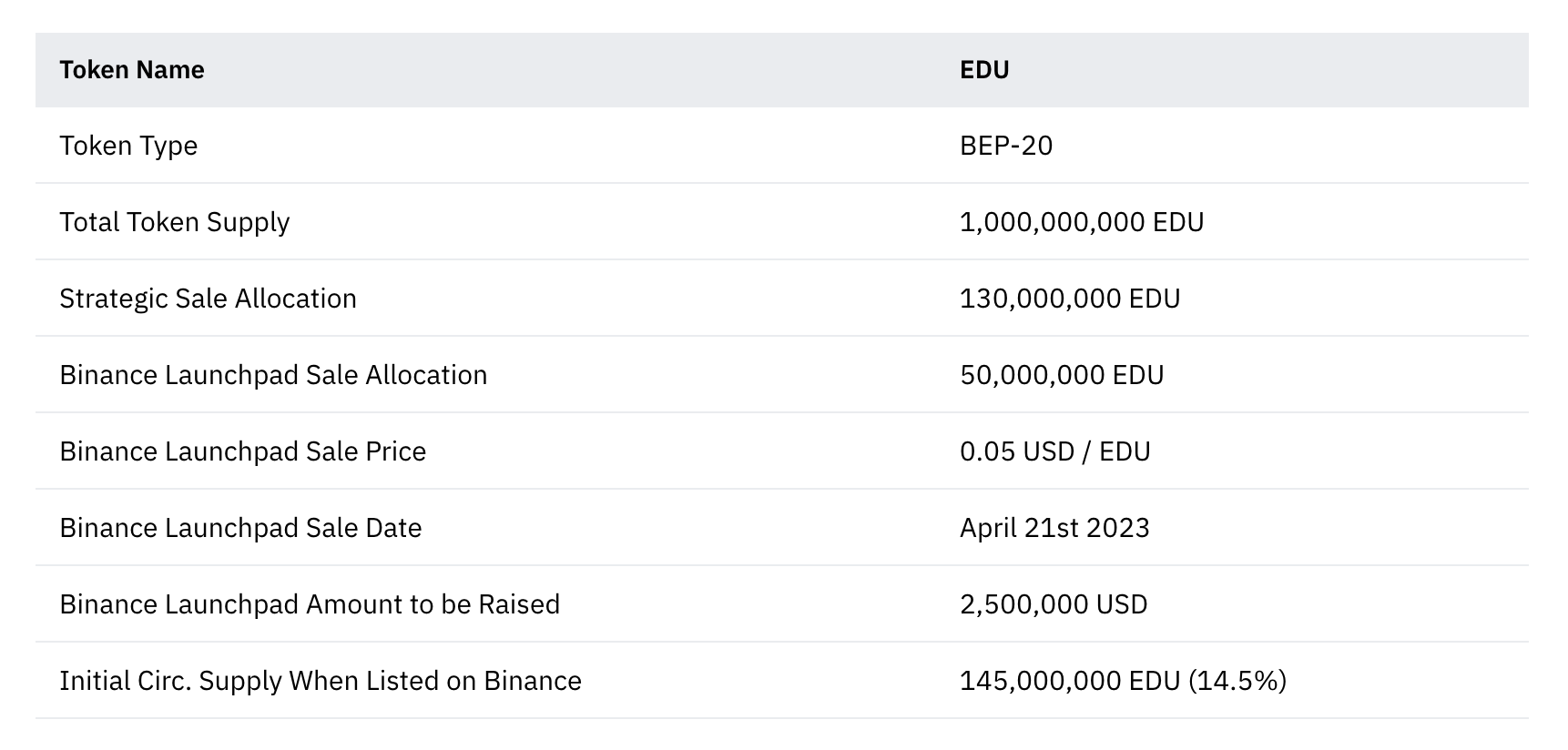 - 총 공급량 : 10억 개 (1,000,000,000 EDU)