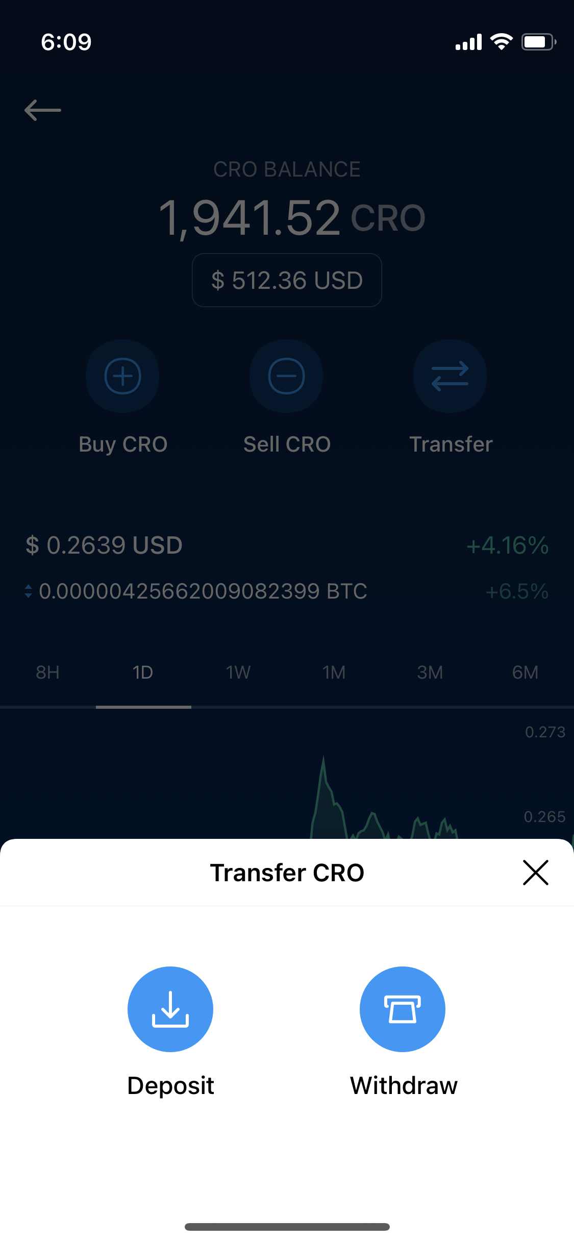 - 크립토닷컴 앱에 계정을 생성한 뒤에 크립토닷컴의 Crypto Wallet 주소(cro로 시작)로 CRO토큰을 출금합니다