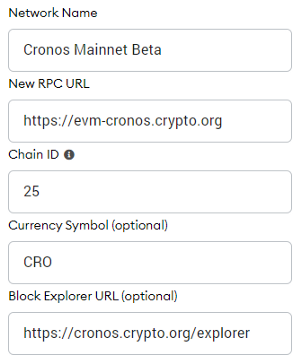 Cronos Mainnet Beta - 새 RPC URL :