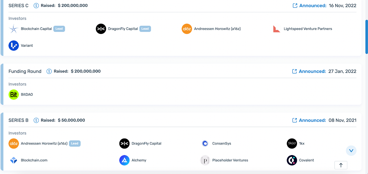 zkSync는 a16z, Dragonfly, Lightspeed와 같은 유명 VC들로부터 4억 5천만 달러 이상을 모금하였으며, Matter Labs의 CEO인 Alex Gluchowski는 "당분간 토큰을 출시할 계획이 없다"고 말했으나, 향후 플랫폼을 탈중앙화 구조로 만들어나갈 때에는 토큰이 출시될 수 있음을 암시한 바 있습니다.