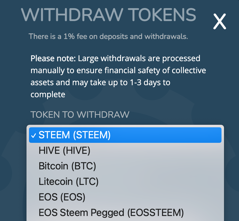 스팀엔진에서 STEEM, HIVE, BTC 등 다른 메인체인의 네이티브 토큰의 페깅 토큰(STEEMP, HIVEP)을 보유 중인 경우에는 WITHDRAW 기능을 통해 원래의 메인 체인으로 인출이 가능합니다.