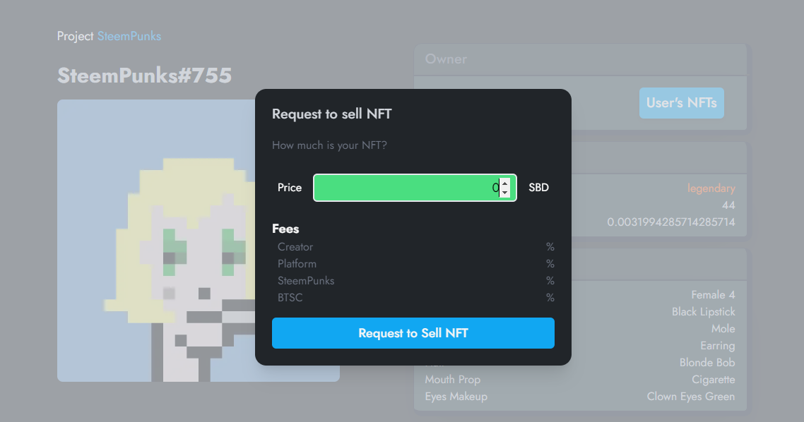 오픈씨, 매직에덴 등과 동일하게 스팀스쿼드에서의 거래 시에도 크리에이터, 플랫폼 수수료 등이 있습니다