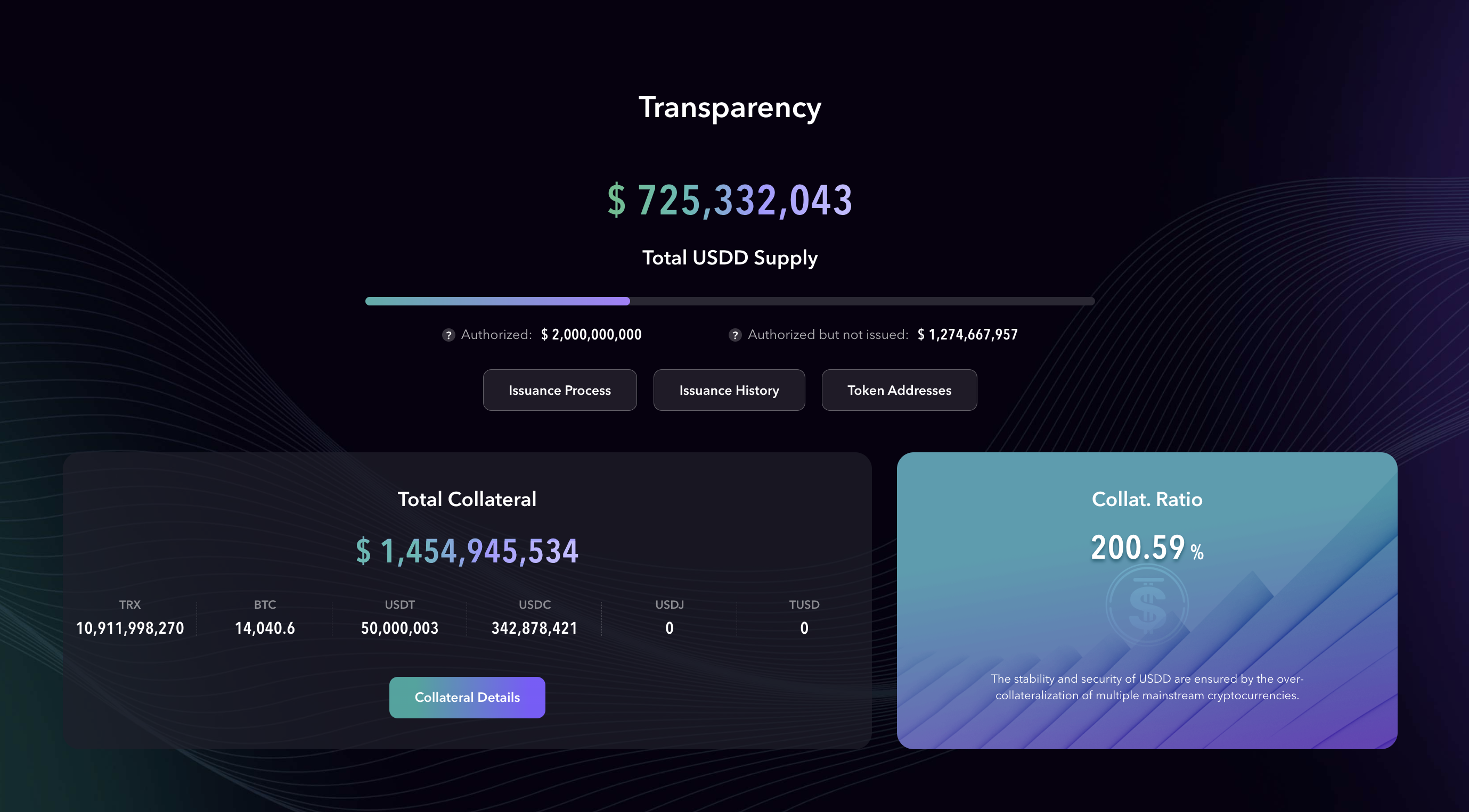 USDD는 BTC, USDT, USDC, TRX 이 4개의 자산으로 200% 담보화되어 있는데, 그 중 TRX의 비율이 약 114% 정도를 차지하고 있다. (이 글을 쓰고 있는 오늘의 가격을 기준으로)
