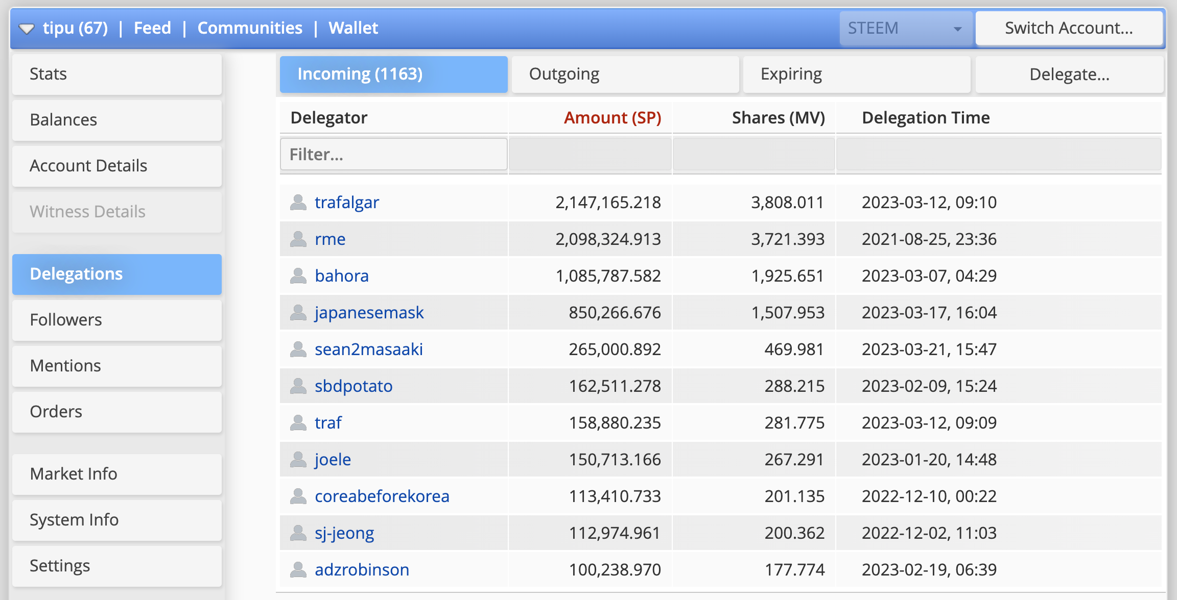 현재 ETH를 적립할 수 있는 업뷰 언은 약 40만 스팀파워 정도로 개인적으로는 이 정도의 규모가 적정하다고 생각합니다. 사실 스팀파워를 임대하고 아무것도 하지 않아도 STEEM을 약 14.5% 수준으로 파밍할 수 있는 tipu 서비스는 1,000만 스팀파워가 되어가고 있는데 업뷰 언은 이 정도로까지 (커질 수도 없고) 커지지 않았으면 좋겠다는 생각입니다.