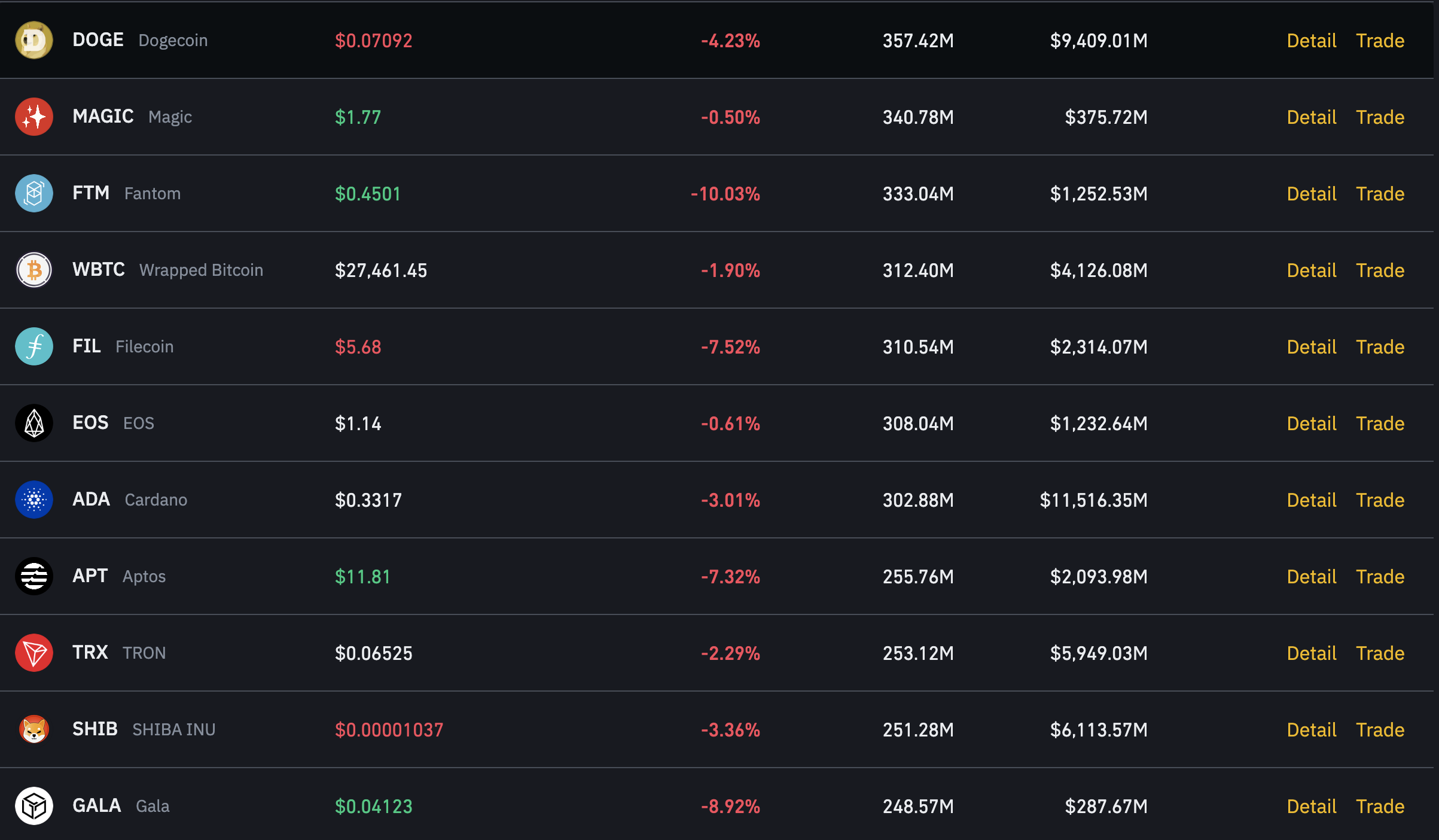 그리고 이 무쓸모해보이는 밈코인들이 세계 최대의 거래소인 바이낸스에서 일일 거래량 기준으로 16위, 25위를 차지하고 있다는 것도 정말 흥미롭습니다.