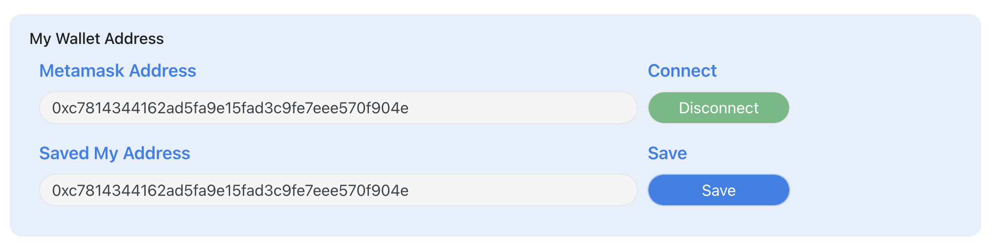 (4) 메타마스크가 정상적으로 연결된 경우 Metamask Address에 내 지갑 주소가 나타납니다.