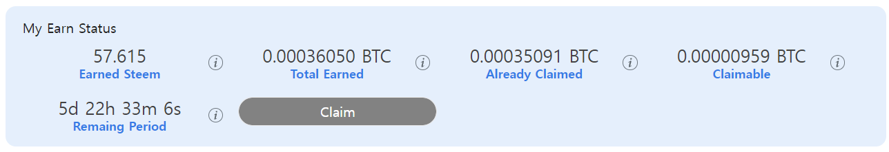 BTC earn 을 개발하고 Claim 부분에서 추가를 하지 않았었네요.
