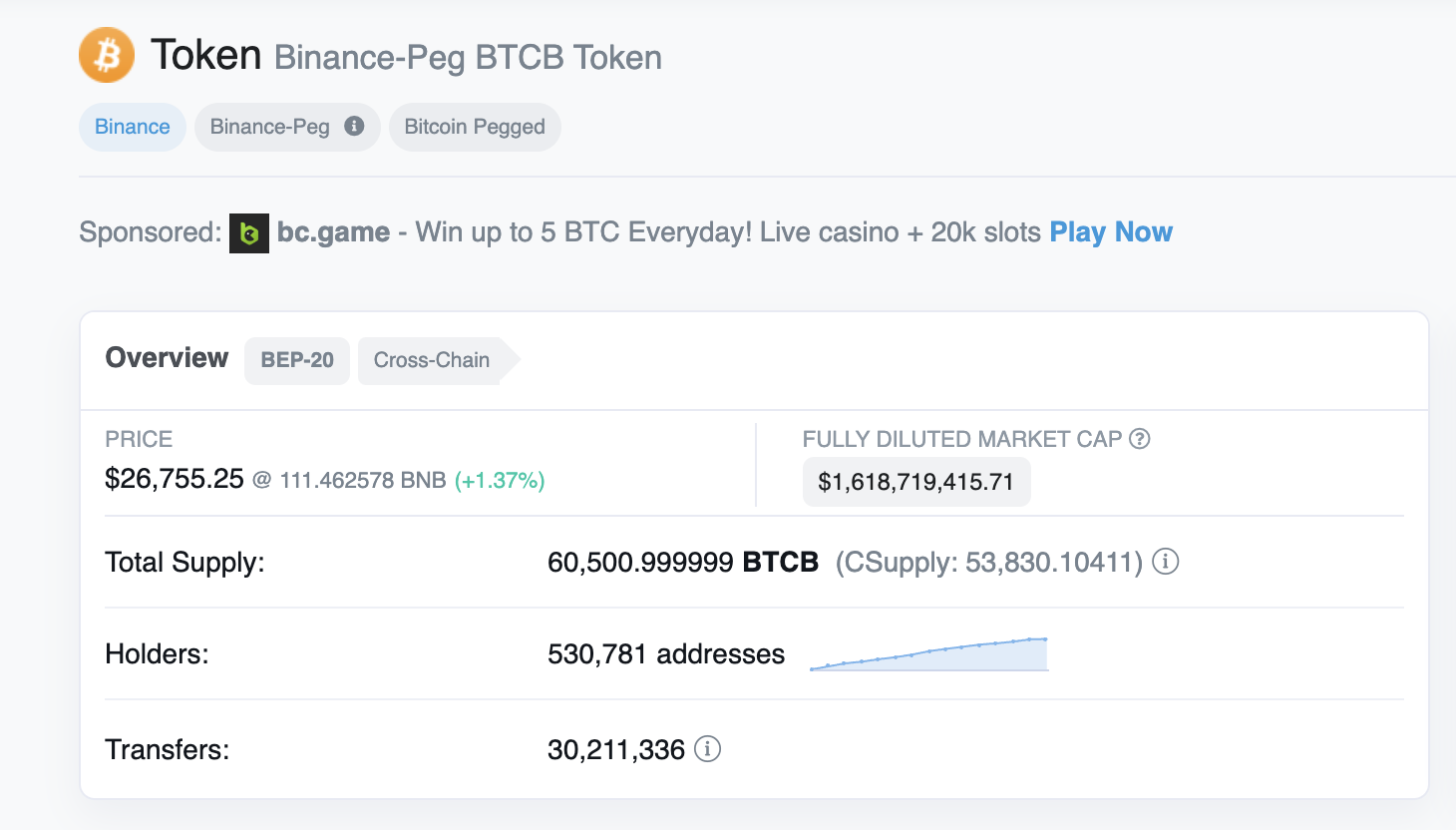 - BNB 스마트체인 BTC 컨트랙트 : 0x7130d2a12b9bcbfae4f2634d864a1ee1ce3ead9c