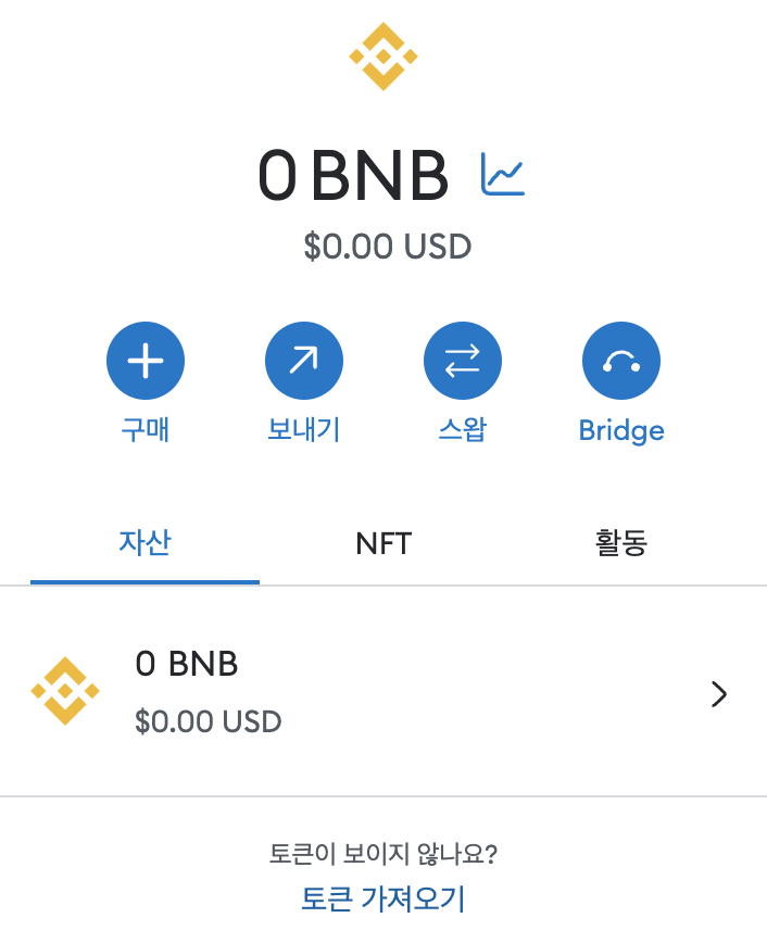- 네트워크 : BNB스마트체인 (네트워크 추가하기 : 바로가기)