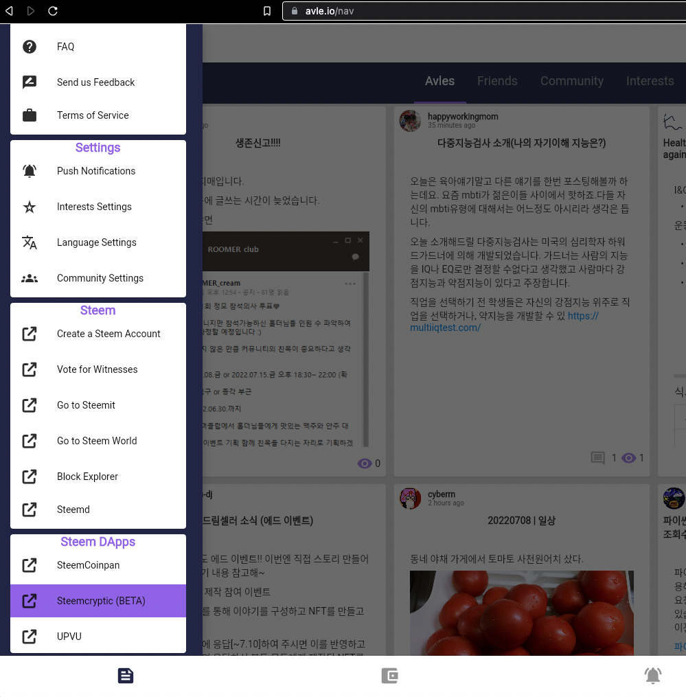 steemcryptic은 avle의 사이드 메뉴에 추가되어 있습니다.