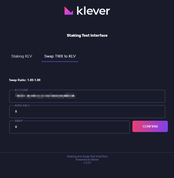 현재 스테이킹을 하기위해서는 TWX -> KLV 로 스왑해야 가능합니다.