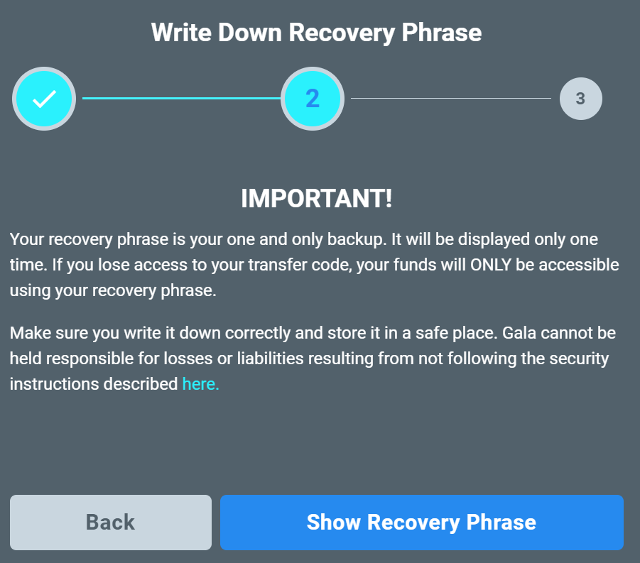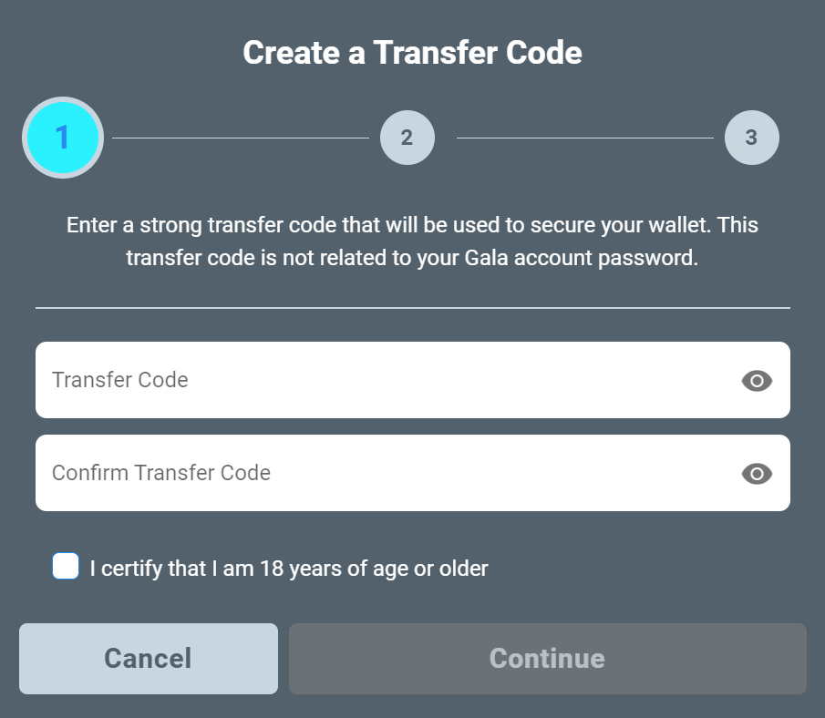 Transfer Code라는 걸 정하라고 나옵니다. 그냥 비밀번호인데, 사이트 로그인용과 지갑용을 별도로 관리합니다.