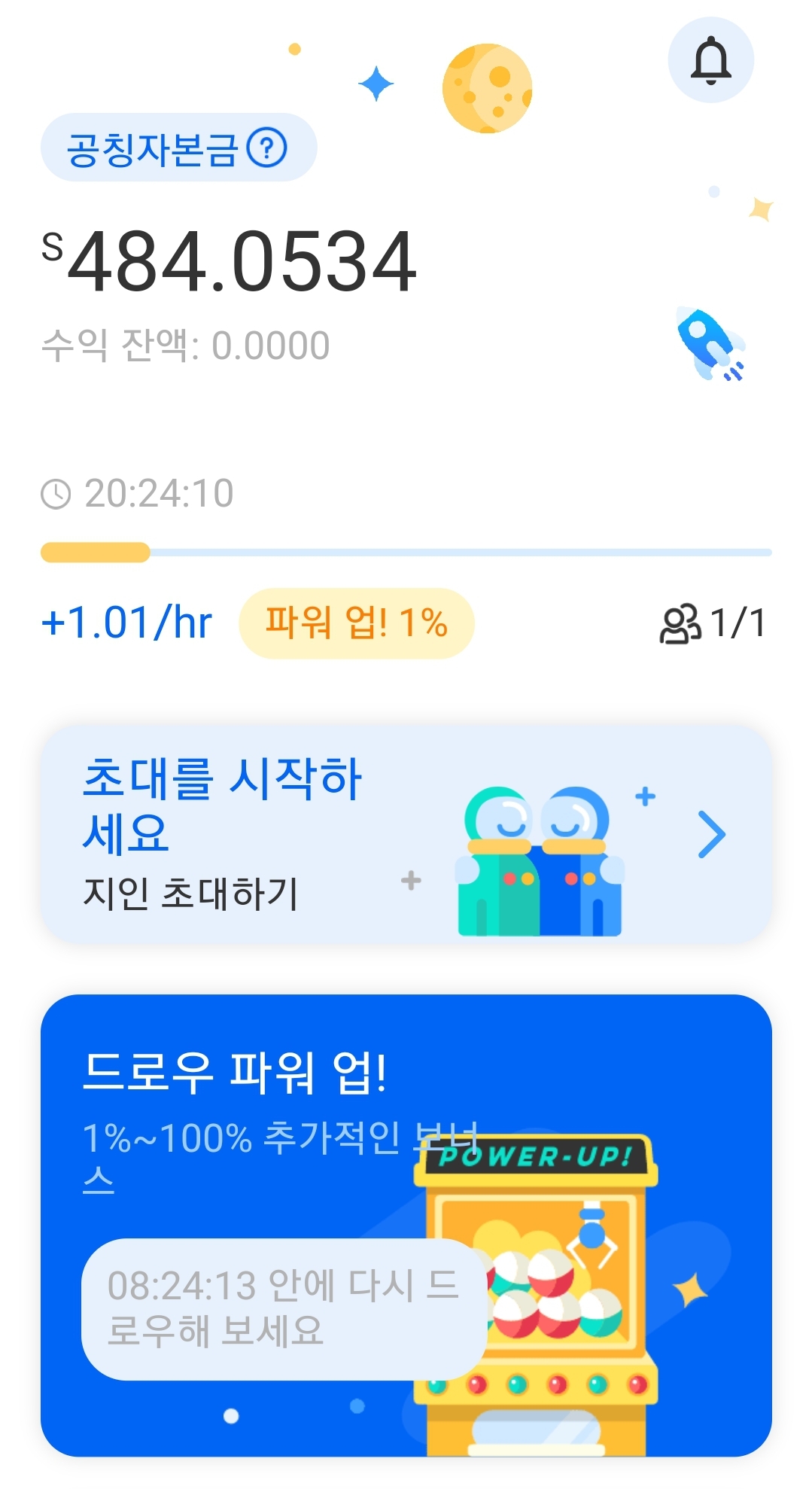 하루에 1번 파이코인 처럼 클릭하면 되고 시간당 0.8개를 채굴 가능!