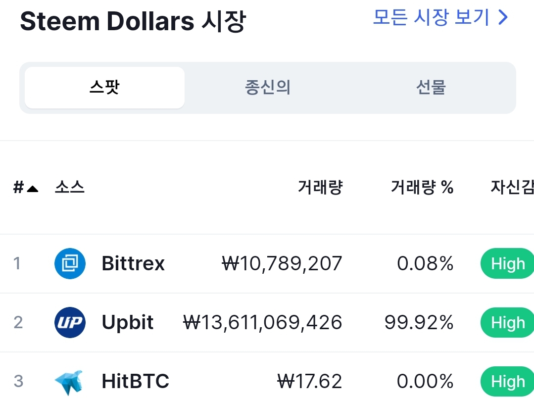 한국 거래소인 업비트에서만 거래량 100%에 육박하는 '스팀달러'