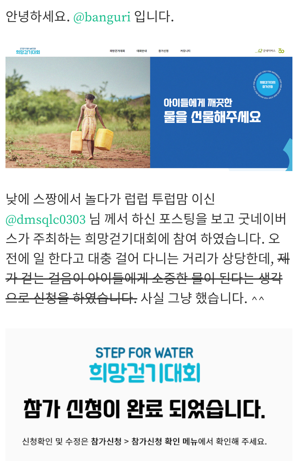 언급하신 @dmsqlc0303님의 엄마의 희망걷기 프로젝트! 포스팅을 보았습니다.