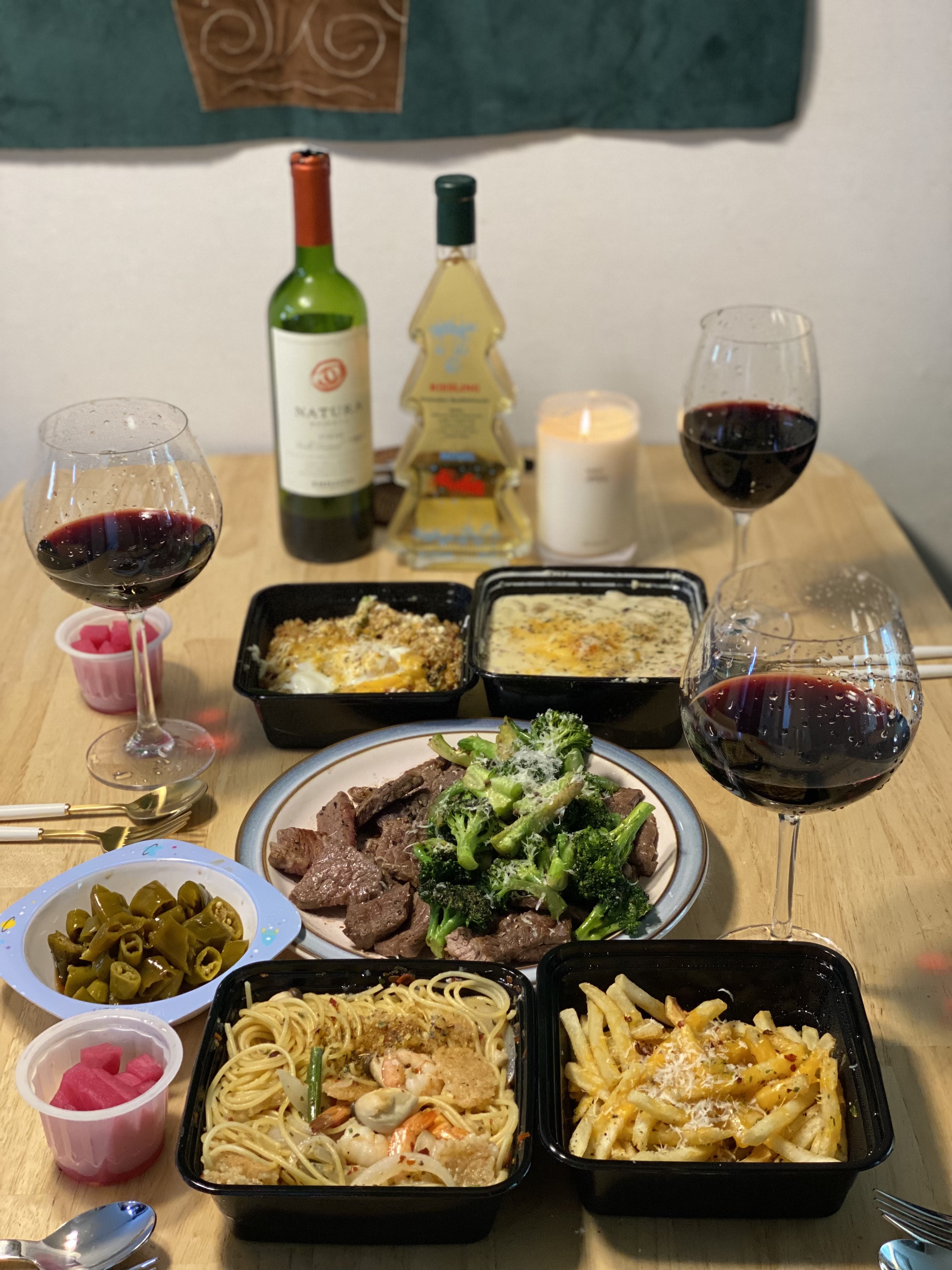 크리스마스 식사 ♡lyh5926 (82)in SCT.암호화폐.Crypto • 4 years ago 소고기 살치살 구워서 브로콜리랑 같이 굽굽 하고 파스타는 배달시켰어요. 고기만 간단히 구웠는데 와인을 한잔씩 따라놓으니 근사한 한상이 되어버렸고 기분이 참 좋았어요 언니가 가져온 패브릭액자도 너무 마음에 들었어요. 벽에 걸었을 뿐인데 크리스마스 느낌 뿜뿜이에요 ㅎㅎㅎ 다들 행복한 크리스마스 보내셨나요? 벌써 연말이라니 믿기지않네요...한해는 정말 빨라요 ㅎㅎ 좋은 연말 보내세요! #sct-kr #sct-freeboard #krsuccess #upvu #zzan #dblog #sct