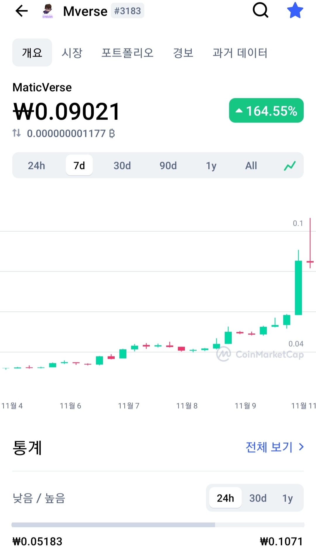 저건 mverse라는 p2e코인챠트고요