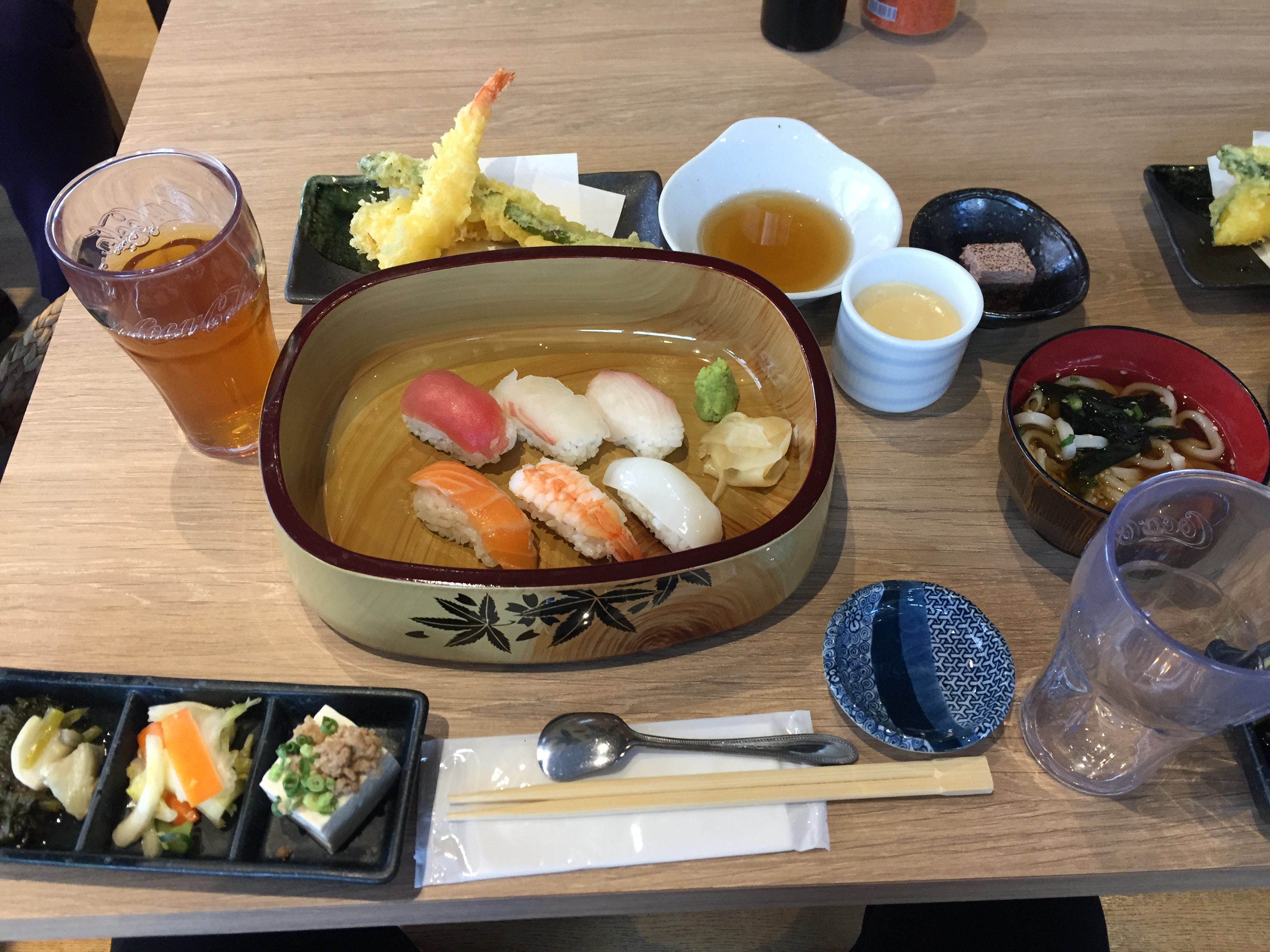 나온 음식은 한국에서 흔하게 먹을 수 있는 스시세트. 웃음이 난다.