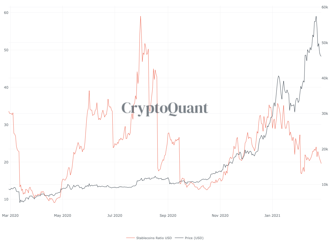 전체 거래소의 BTC 보유량을 USD로 환산한 값에서 스테이블코인의 보유량을 나눈 값을 나타내는 지표입니다. 스테이블 코인 비율이 높을 때마다 매도압력이 높다고 합니다. (이 지표는 MACD 지표가 있다고 하는데 사이트에서 찾지 못 했습니다.)