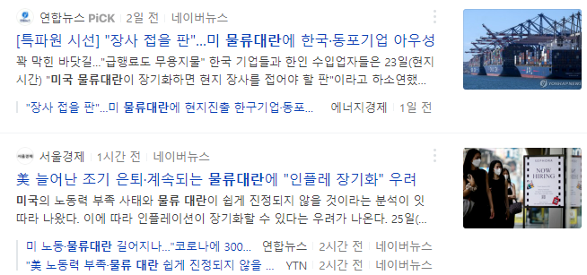 미국에 수입되는 막대한 수입 화물의 40%를 캘리포니아 LA항과 롱비치항만에서 처리하는데 현재 캘리포니아 앞바다에 컨테이너선 수백척이 떠 있는 상태입니다. 작년 코로나 팬데믹 때 항만 노동자들을 대거 해고했더니 이제와서..일할 사람이 없다는. 항만노동자들은 어차피 실업급여가 나오니 복귀할 생각 자체가 없는것이죠. 미대륙을 횡단하는 트럭 트레일러 드라이버들은 굉장히 고된 직업이지요. 끝없는 운전..그리고 운전. 노동자들의 상당수가 외노자 출신인데.. 2020 코로나 때 실업으로 인해 본국으로 돌아간 상태지요. 선적 관리하는 항만 노동자도 부족. 드라이버도 부족한 상황. 여전히 캘리포니아 앞바다에는 화물선이 둥둥 떠있죠... 몇 개월째. 그랬더니 물건을 받지 못하닌 도소매업자들은 트럭을 보내서라도 물건을 가져오기 위해 트럭 기사를 보내는데... 그러나 선적을 담당할..화물을 실어줄 사람이 없어서 대기 그리고 또 대기. 그러다보니 항구가 마치 주차장이 된 듯합니다. 보다 못한 주정부는 주방위군을 투입을 준비하고 있다고 합니다.