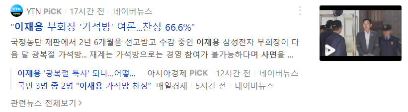 일단 최소한 가석방은 확보네요 ㅎㅎ 기사 너어무 많이 나오네요