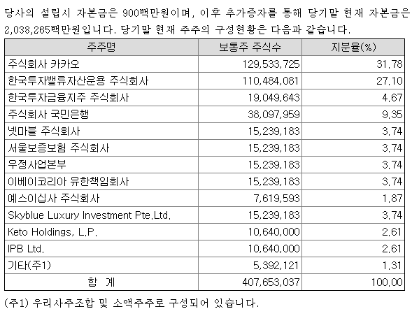카카오뱅크 지분 구조를 살펴보면 그 답이 있습니다. 한국금융지주, 넷마블, 예스24가 눈에 띄네요. 이 중에서도 시총이 제일 가벼운 건 예스24. 지난 주 금요일 예스 24는 상한가를 갔습니다. 그러나 카카오는 최근 조정을 받았죠. 시총이 ㅋㅋ얼마나 무거운 지..움직이지 않아요.