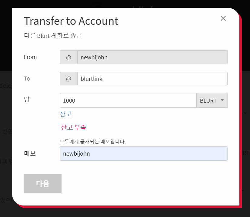 • TO 부분에 blurtlink 를 넣어주세요.