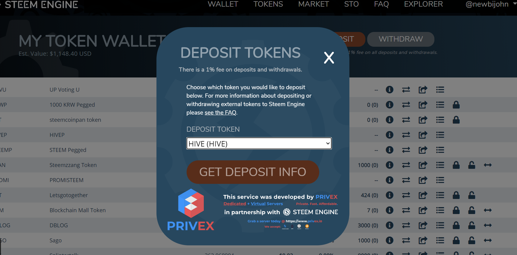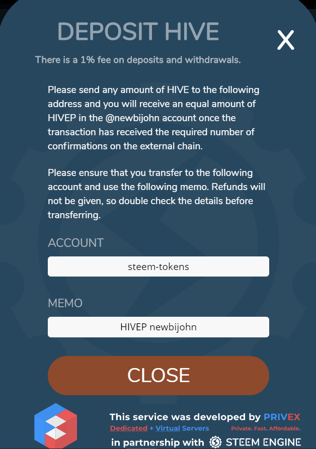 Deposit에서 하이브를 선택하고 버튼을 눌러주세요